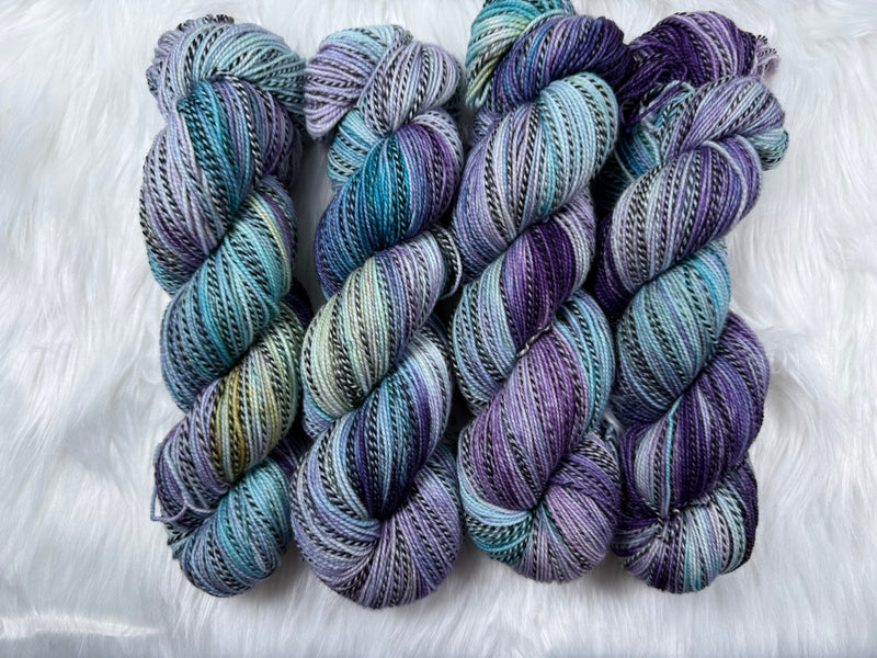 Crafted from the finest quality merino wool, our sock yarn features a unique pattern that's sure to catch the eye. But that's not all - we've added a fun new twist by plying the yarn with one black and one white thread, alternating with all white to create a stunning effect.