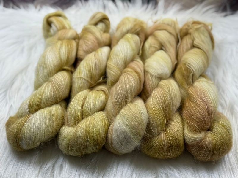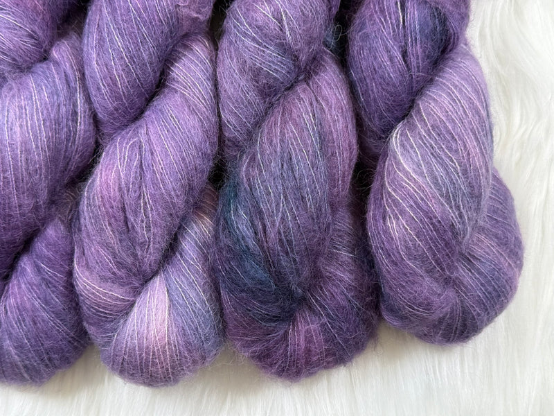 Knitting up as a fingering weight, Suri Silk Fluff is perfect for adding a touch of elegance to your creations. Whether you're pairing it with your precious single skeins or letting it shine on its own, this yarn will bring a soft, dreamy texture to your work. Ideal for lightweight garments, accessories, and any project that deserves a bit of luxury, Suri Silk Fluff is sure to become a staple in your yarn collection.